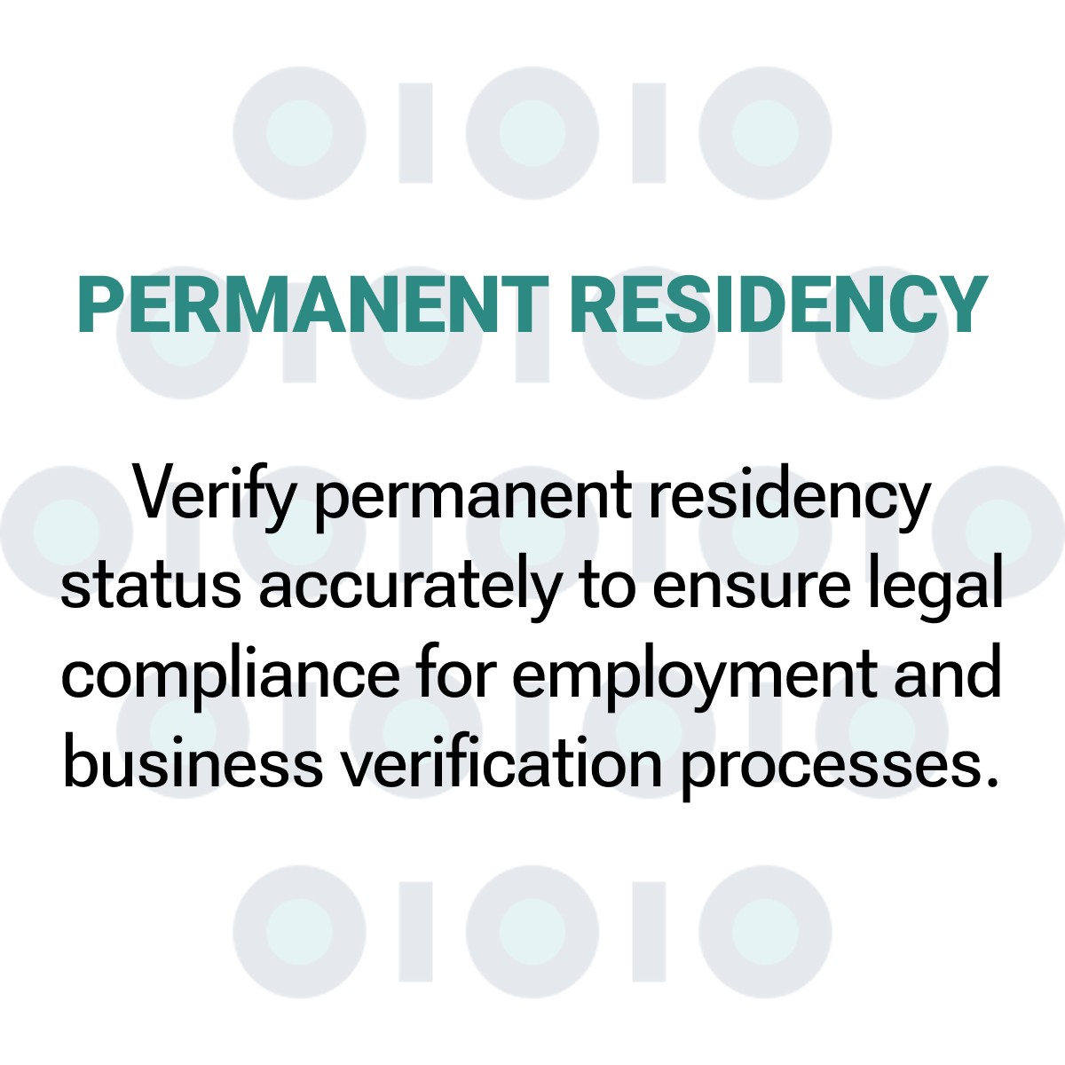 Verify permanent residency status accurately to ensure legal compliance for employment and business verification processes.