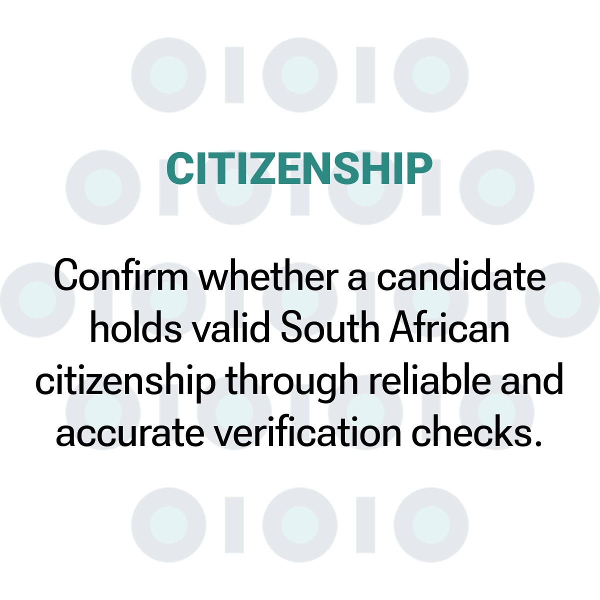 Confirm whether a candidate holds valid South African citizenship through reliable and accurate verification checks.