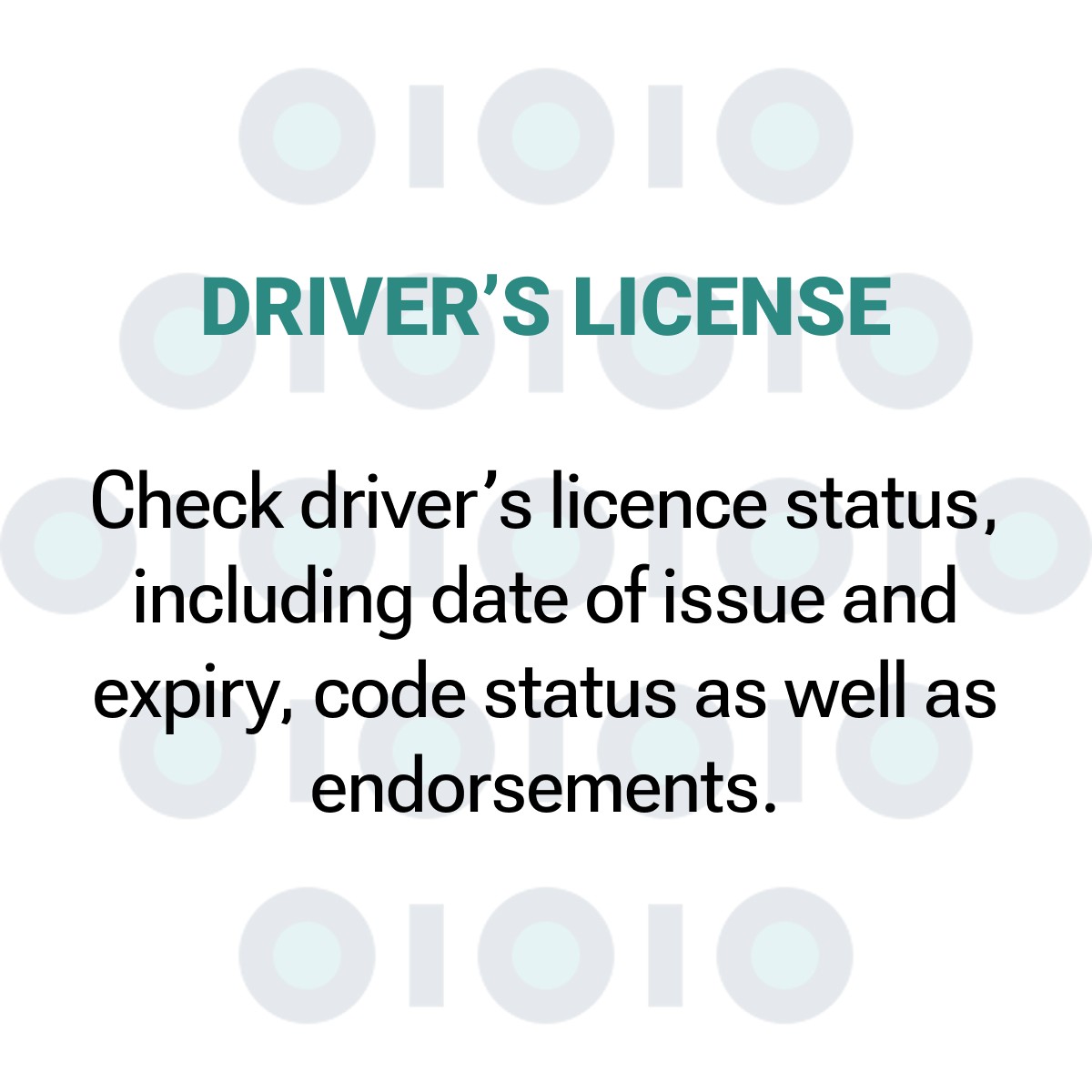 Check driver’s license status, including date of issue and expiry, code status as well as