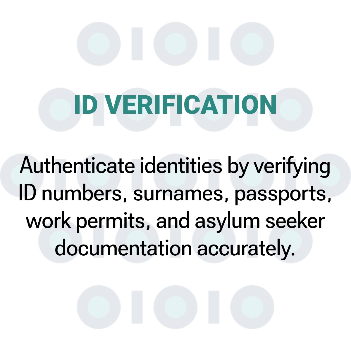 Authenticate identities by verifying ID numbers, surnames, passports, work permits, and asylum seeker documentation accurately.